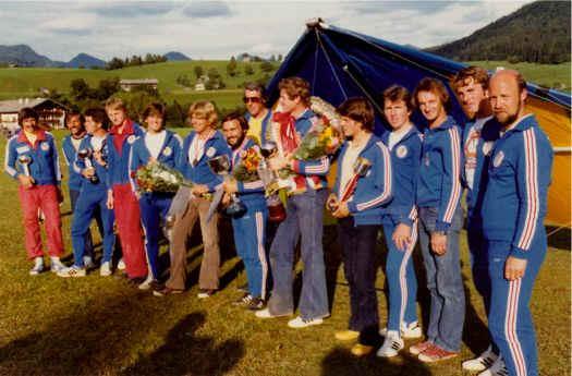 Siegerehrung bei der Europameisterschaft 1978 in Kössen in Österreich.